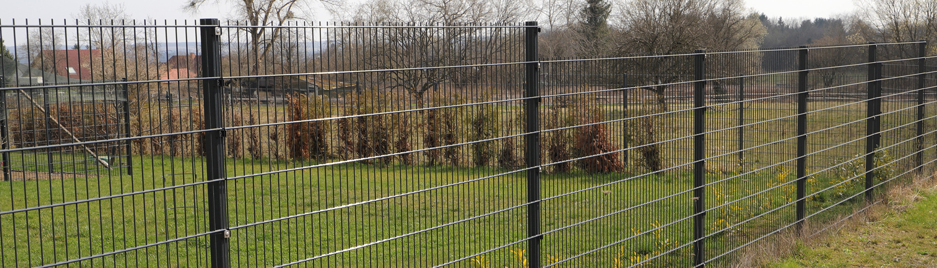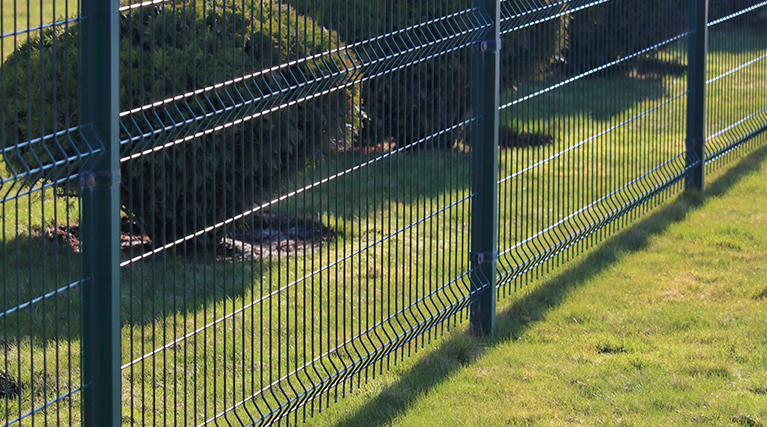 V-mesh fencing is a strong wire fence panel system consisting of vertical and horizontal steel mesh wires which overlap each other to form a rigid mesh panel, making it difficult to climb. Our V-mesh fencing comes in a range of heights and colours, and we can provide access gates to suit your requirements. Palisade fencing is similar to this but the wires are at a different distance, creating a different look to the fence.